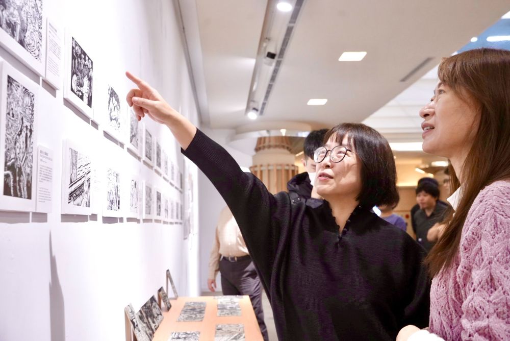 隨後,透過版畫工作坊,將文字史料轉譯為具象的木刻圖像。臺史所許佩賢教授表示,本次聯展選擇以木刻版畫形式呈現,也有向師院教師也是木刻畫家的白色恐怖受難者黃榮燦之經典二二八事件版畫作品《恐怖的檢查》致敬之意。