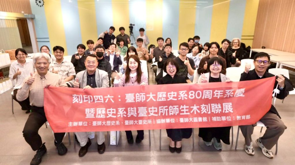 由國立臺灣師範大學歷史學系及臺灣史研究所主辦的「刻印四六」師生木刻聯展,4月8日於圖書館一樓盛大開幕。歷史系與臺史所24位師生透過木刻版畫的創新形式,將七十餘年前發生於師院的「四六事件」轉譯為具象且淺顯易懂的圖像,引領觀眾跨越時空,感知威權體制下凝重肅殺的氛圍。適逢臺師大歷史學系創系80週年,在場貴賓與師生亦共同慶賀歷史學系80歲生日快樂。