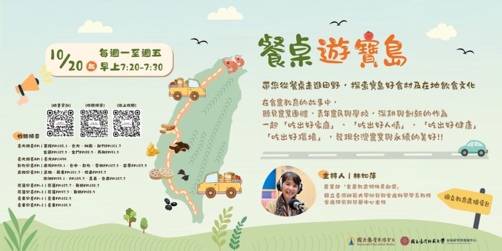家庭研究與發展中心林如萍主任攜手教育廣播電台 推出食農教育節目《餐桌遊寶島》