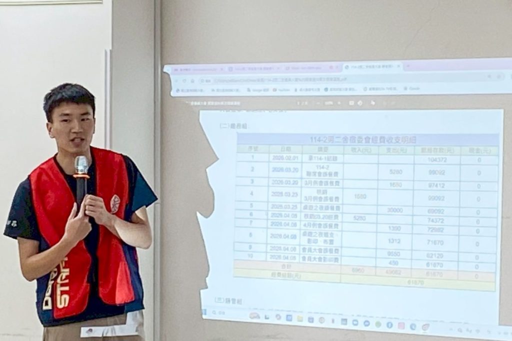 男二舍舍長邱正鑫提到,這屆宿委會的工作目標為:務實、效率、大方、豐富、有感,這學期活動除了已舉辦完成的桌遊之夜、這次的會員大會,期中後五月份尚有公館校區三舍合辦的「風之市集」,同時文書組也在協助規劃講座活動,期許增進住宿生的生活福祉,打造共寢共學的住宿環境。