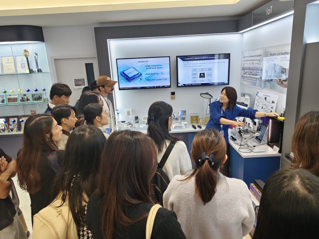 瑞昱半導體的參訪由法人關係部協理暨總經理室陳慧珊特助帶領學生完整了解瑞昱,她說明瑞昱自七位工程師創立以來的發展歷程、核心產品布局,以及在全球半導體產業中的定位。她指出,瑞昱長期深耕IC設計領域,產品應用橫跨網路通訊、電腦週邊、多媒體音訊、車用乙太網路及AIoT等新興科技,並以「專業、信任與團隊成長」作為企業文化核心,致力於打造能讓人才長期發展的工作環境。針對學生關注的人才培育與職涯發展議題,陳慧珊協理進一步表示,隨著半導體產業快速演進,企業對於兼具專業技術能力、跨文化溝通能力與國際視野的人才需求日益提升,並肯定大學端在培育跨領域與國際人才上的關鍵角色。