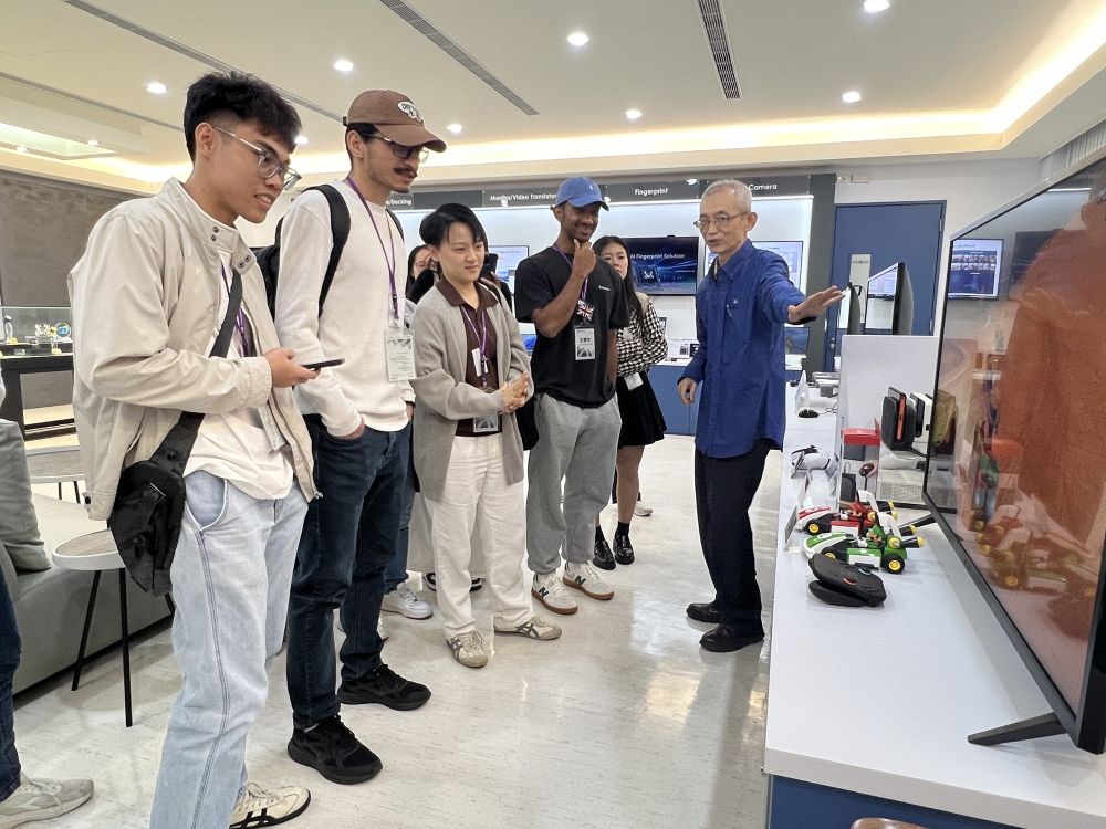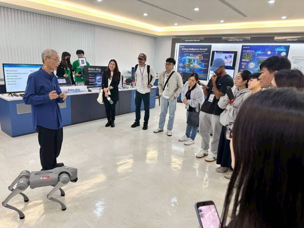 參訪過程中,總經理室謝燕村特助以精闢且專業的全英文講解,為學生們展示瑞昱在AIoT領域的創新應用成果——BenBen機器狗。透過實際操作演示,學生們親眼見證半導體技術如何驅動智能機器人的靈活動作與互動功能,從晶片設計到終端應用的完整產業鏈在此具體呈現。生動的展示讓來自不同專業背景的學生大開眼界,也更深刻理解半導體技術在新興科技領域中的關鍵角色與無限可能。