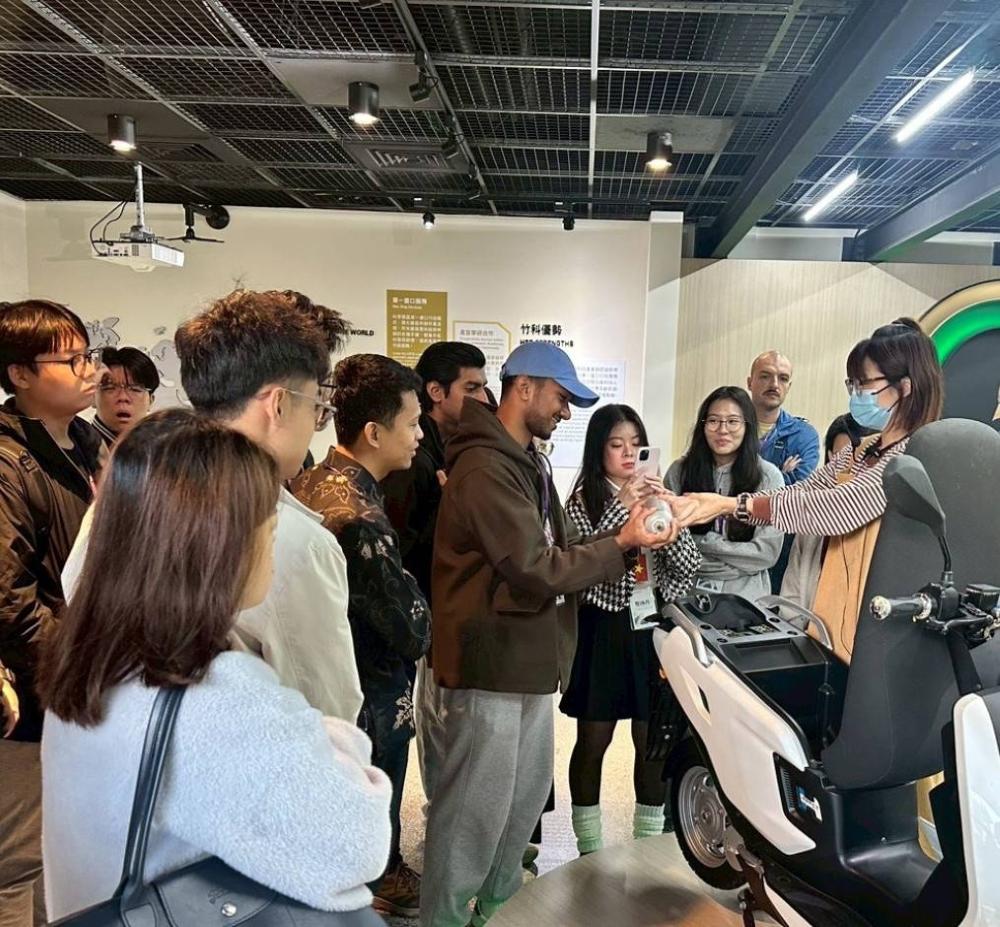 本次參訪行程安排緊湊且內容豐富,首站為新竹科學園區探索館。探索館位於竹科早期廠房區,是見證臺灣科技產業起飛的重要地標。館內透過前瞻館、產業館與文化館三大展區,呈現新竹科學園區自1970年代創立、發展至成為全球半導體重鎮的完整歷程,並涵蓋半導體、光電、資通訊(ICT)、人工智慧與綠色科技等主題。透過全英文導覽,學生得以從歷史、產業與文化多重視角,理解臺灣科技產業的形成脈絡與精神。