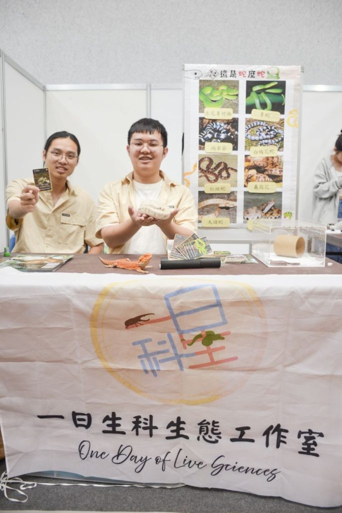 115級學生劉威慶表示,顯微鏡操作是生科系的基本技能之一。針對不同類型的生物樣本,會採用抹片法或石蠟包埋切片法,觀察其組織結構,培養精準的觀察與分析能力。114級王家凱則介紹,生態與演化組關注生物與環境長期互動關係。他們延續前人研究,以窗殺現象為題,補足亞洲區資料缺口,並將成果發表於第13屆亞洲猛禽研討會      (ARRCN13),實踐從在地觀察走向國際分享的學術目標。