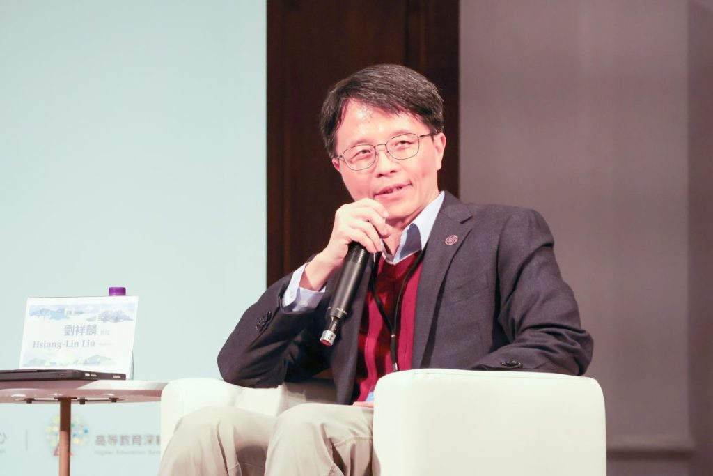 臺師大物理學系教授兼環境安全衛生中心劉祥麟主任,分享臺師大以聯合國永續發展目標(SDGs)為核心,推動校園永續的實務成果,包括淨零排放研究、再生能源應用、低碳交通「騎零王」行動,以及結合社區需求建立永續發展中心等,並持續透過自我評估與改進機制,朝2030年碳排放減量50%、2048年達成碳中和的目標邁進。他強調,永續不僅是技術問題,更是一項以「人」為本的長期治理挑戰。