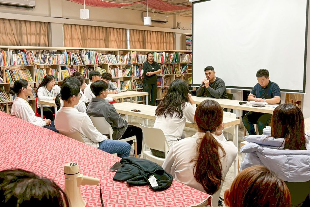 開訓後,徐若謙講師以有趣活潑的方式引導院生分組、訂出隊名與創作隊呼,期間更提醒同學們應發想創意而非全然仰賴AI,藉由唱歌、繪畫接龍等不同方式建立團隊默契,讓院生經由與其它同儕溝通習得初步溝通技巧後,逐步推進至本次營隊重要活動「教學體驗」的事前準備。
