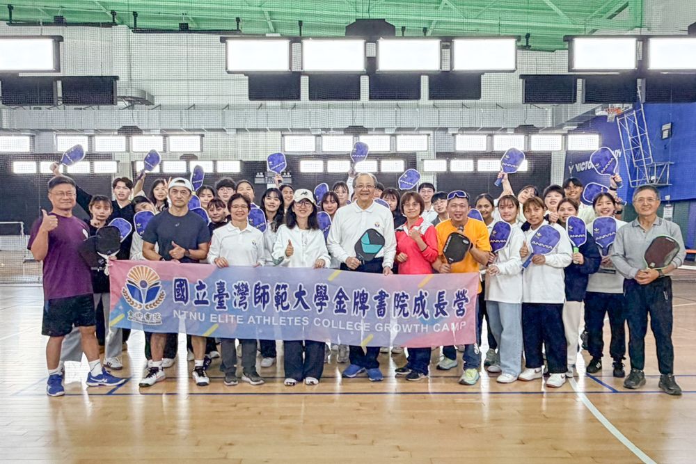 在說明結束後,則是安排書院師生在國民運動中心的場地體驗近年風靡全球的運動「匹克球」,鄭院長與林副執行長皆與院生同樂,師生共度了愉快同場互動的時光;中華民國匹克球總會理事長周曉琴女士更是稱讚書院師生從事匹克球運動的潛力,也期待未來有機會讓匹克球成為臺師大發展的特色運動之一,讓更多師生投入這項參與人數發展迅速的運動。