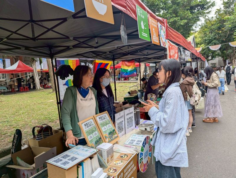 還有一些攤商為理念推廣型,邀集六個非營利組織及三個政府單位參與,例如「鴻名企業股份有限公司」結合廢棄電器用品製作裝置藝術,拼組出世界地圖,傳達資源再利用的概念;「臺北自來水事業處」運用水箱及水表介紹居家省水妙招,以及「臺北市環保局」、「臺北市政府青年局」等政府單位亦共襄盛舉。從關心自然生態、海洋保育、減塑到人權、婚姻平權等議題,參與者可前往感興趣的攤位與工作人員深入交流,響應SDG17「夥伴關係」,串聯多元夥伴,打造交流與對話的平台,展現市集作為促進社會連結與公共參與的行動空間,並透過互動展示與教育推廣,讓永續理念走入日常生活。
