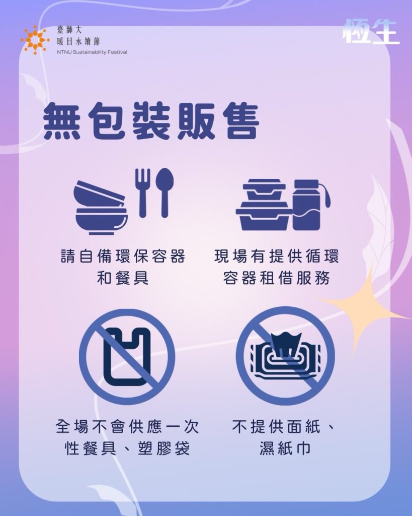 「暖日永續節」事由臺師大學生自主發起並全程籌劃,成為推動校園永續的重要實踐活動。活動展現永續多元面向,包括舉辦以蔬食友善、數位媒體、居住正義等為主題的永續論壇,廣邀專家與行動者對談,激發思辨與對話;市集匯聚永續學生團體、社會組織與生活品牌,並落實「無包裝、無肉蔬食」等減塑行動。藉由各類永續活動的整合與串聯,喚起學生對議題的認同與關注,進一步轉化為具體行動,推動永續校園的實現。