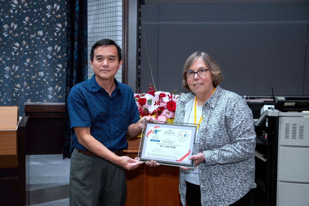 The ecological documentary Wild Wetlands, produced by NTNU with support from the National Science and Technology Council, received the “Best of Best Award” from international wetland organizations. Director Feng Chen-Long (left) accepted the award on behalf of the production team. (Photo by Yi-Te Chiang, alumnus of the Graduate Institute of Sustainability)