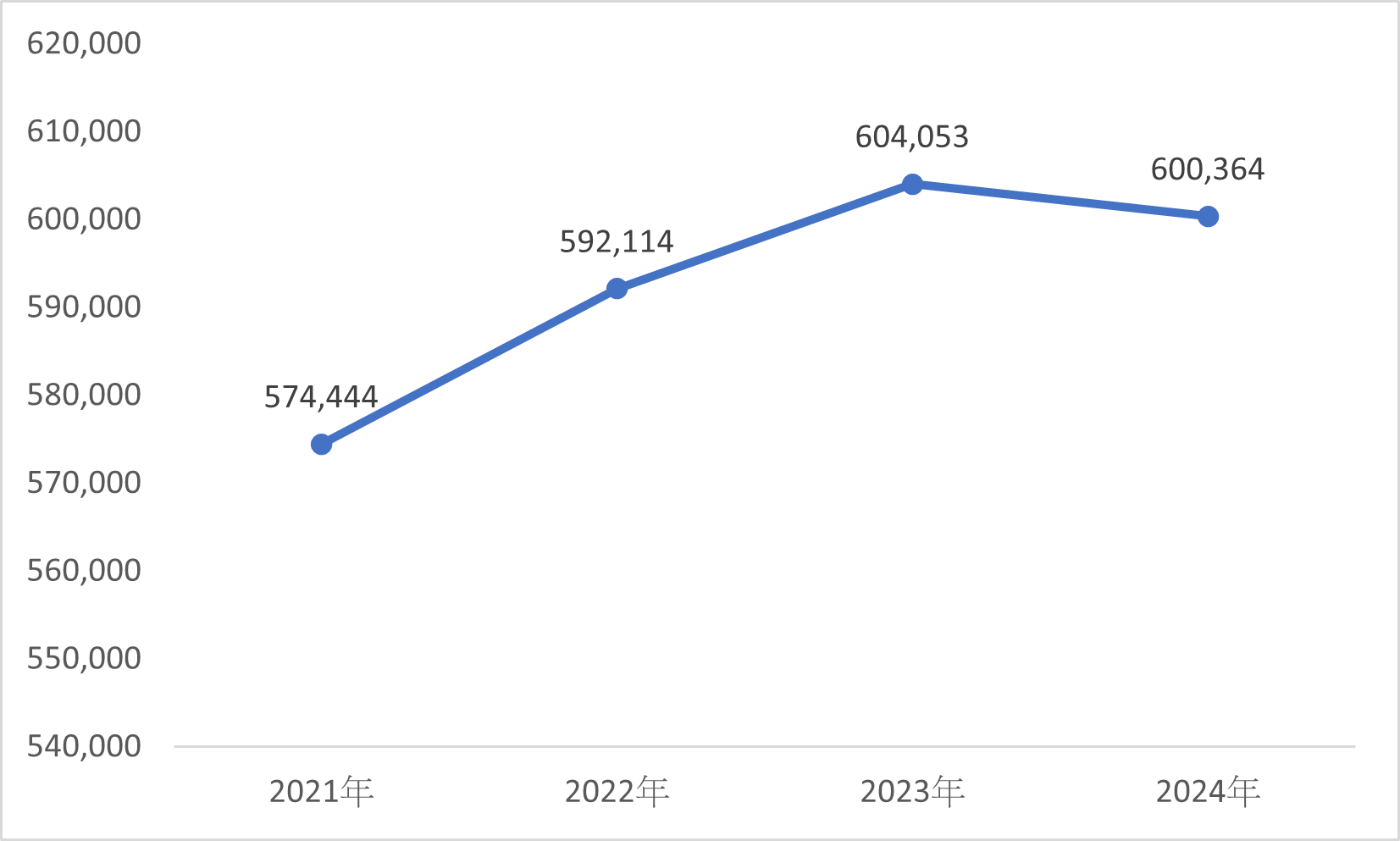 本校在2024年的總用水量為600,364 kg/m3,相較於2023年總用水量604,053 kg/m3,共減少3,689 kg/m3,約減少0.61%的用水量。